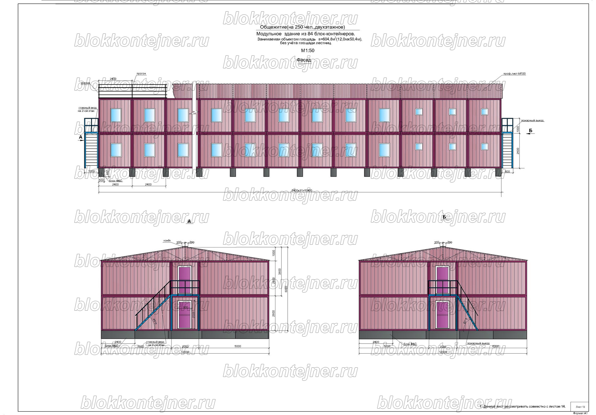 ГлавнаяПроекты готовых решенийМодульные здания → Двухэтажное общежитие на 250 человек из 84 БК