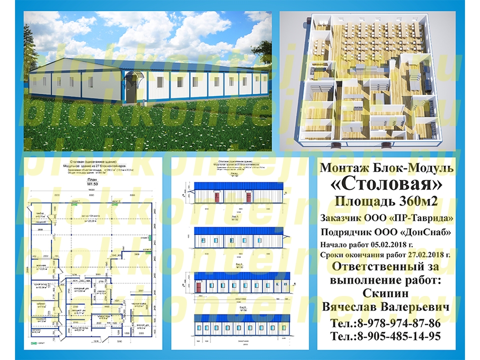 Модульное Здание размером 20,0*18,0*2,8 м состоящие из Блок –контейнеров размером  БК 6,0*2,4*2,5 - 21шт.; 6,0*1,6*2,5 - 6шт.;